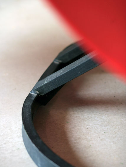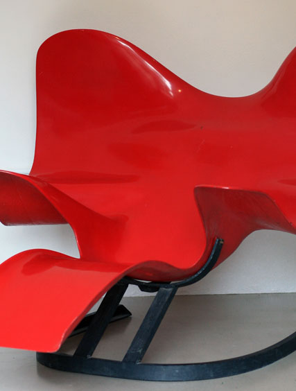 Molded and coated fiberglass on painted steel base.