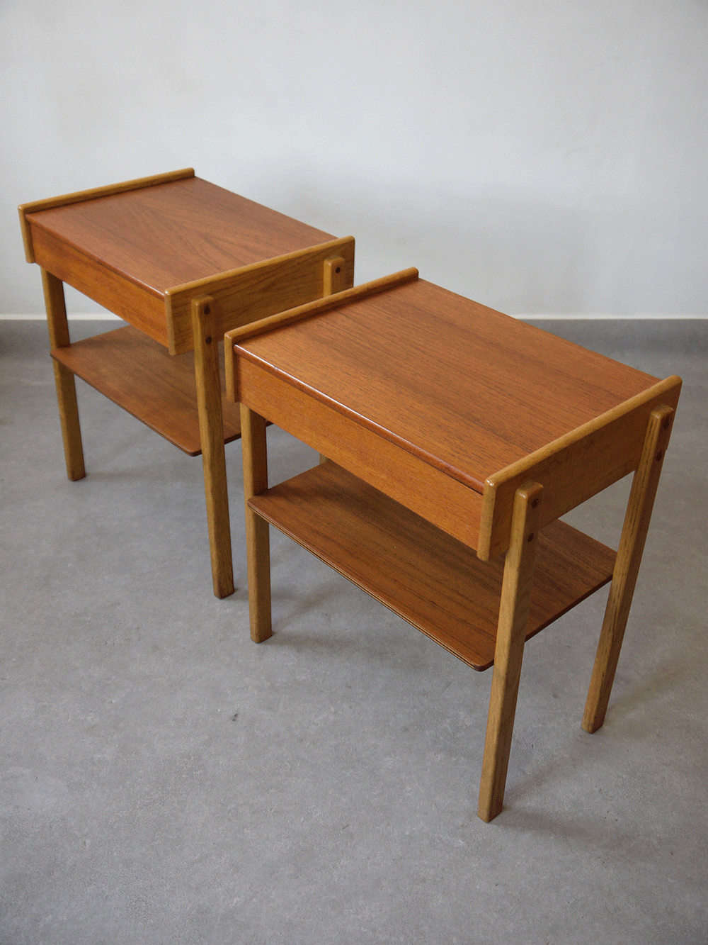 Danish – Pair of Teak and Oak Bedside Tables