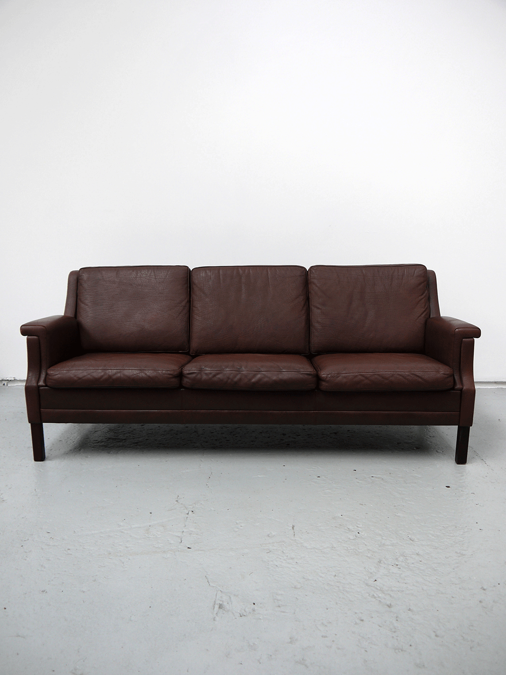 Danish – Three Seat Brown Leather Sofa.