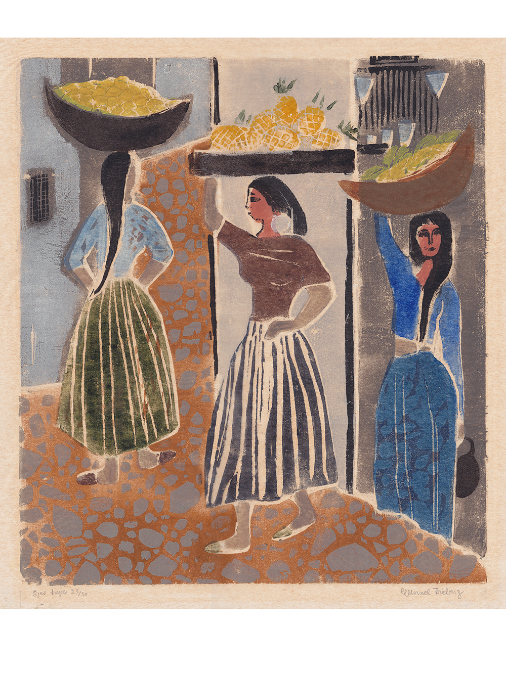 Gunnel Frieberg – ‘Street Vendors’ Woodcut