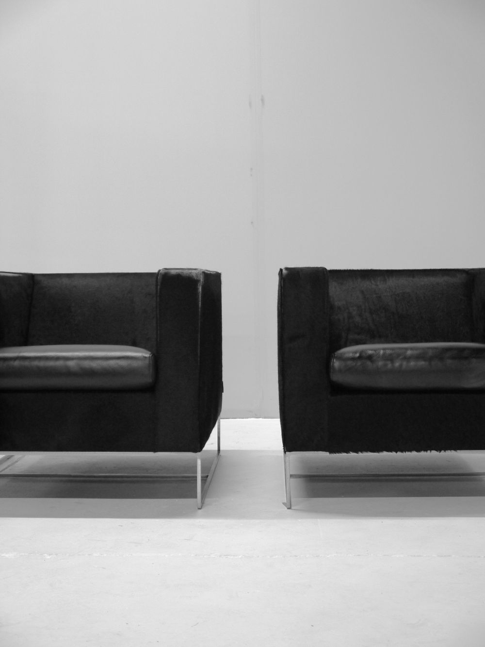 PONY8T Published 10 January 2026 at 1000 × 1333 in Minotti Kee – Pair of Black Leather and Pony Hide Lounge Chairs